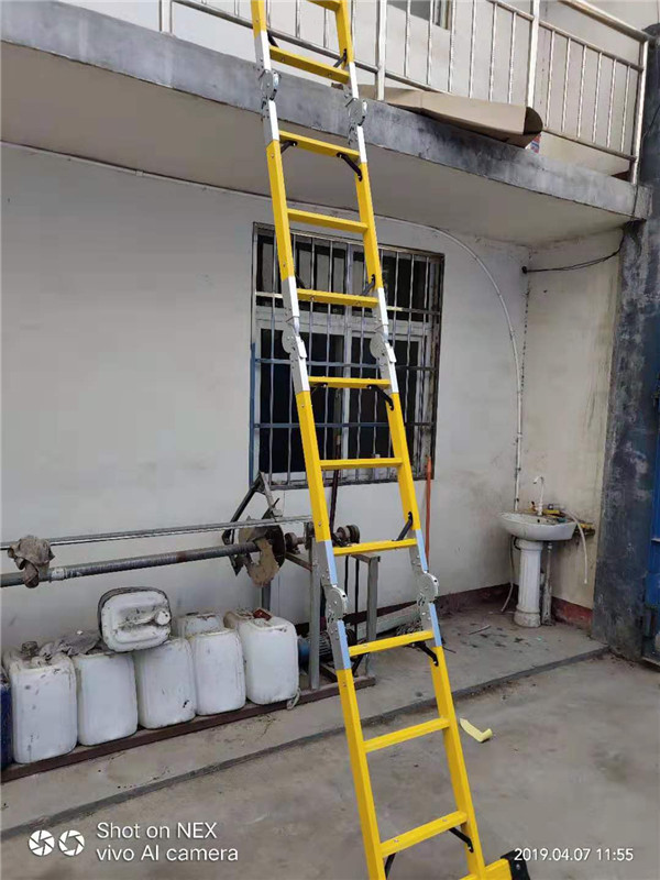 稳攀品牌的绝缘关节梯可实现一梯三用,可随意切换成单梯、人字梯、平台梯。
